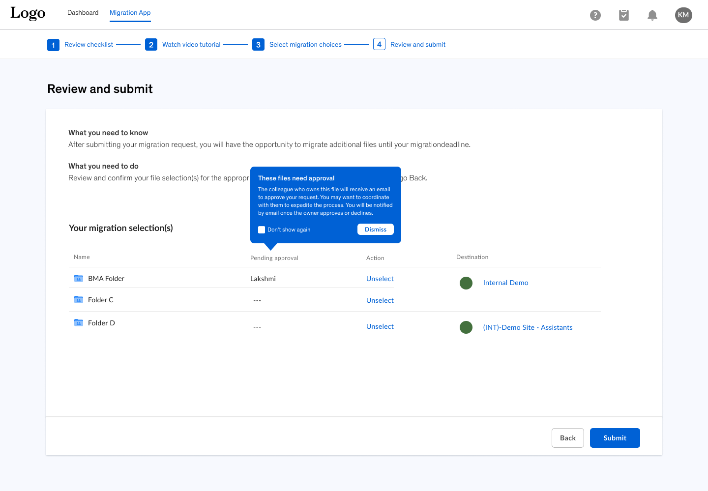 Modal added to the Migration App, prompting users to consider the best storage location for their files